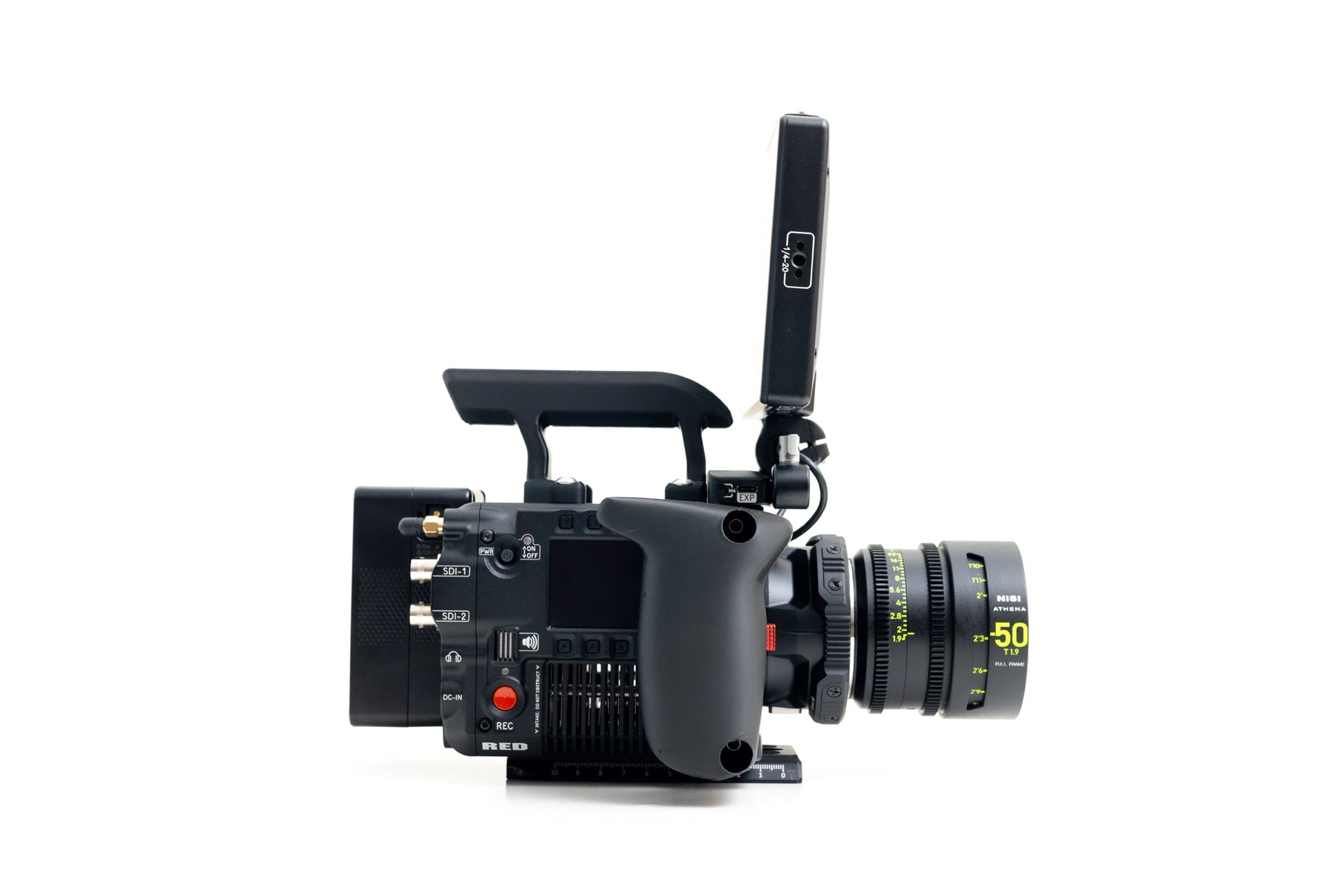 The handle is the perfect way to hold your Raptor for any purpose, whether it's run-and-gun work, or just moving around on set, the front hook offers the perfect home for your forefinger while your other fingers wrap just behind it.